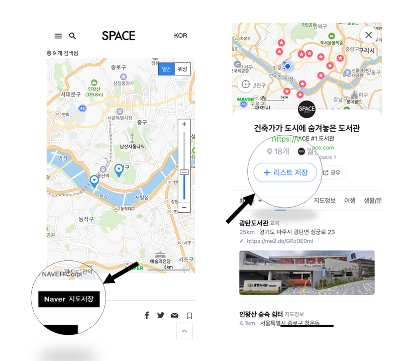 - ์ฐ๊ฒฐ๋ ์ง๋ ์ข์ธก ์๋จ '+๋ฆฌ์คํธ ์ ์ฅ' ๋ฒํผ์ ๋๋ฆ