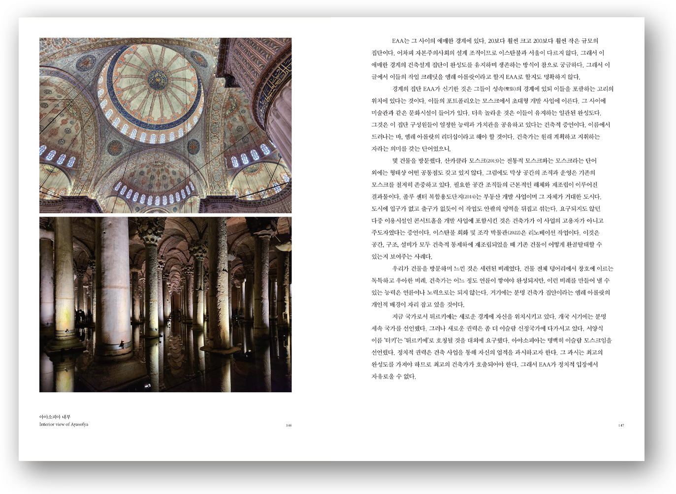 『EAA SO?』는 튀르키예 건축을 소개하는 데서 멈추지 않고, ‘아시아적’ 건축이라는 개념을 다시 생각하게 만드는 책입니다. 서로 달라 보이는 실천들이 하나의 맥락 속에서 어떻게 닮아가는지, 그 과정을 따라가다 보면 자연스럽게 떠오르는 질문들이 있을 거에요. 읽으시다 보면, 어느 지점에서 가장 오래 머물게 되는지도 궁금해집니다. |