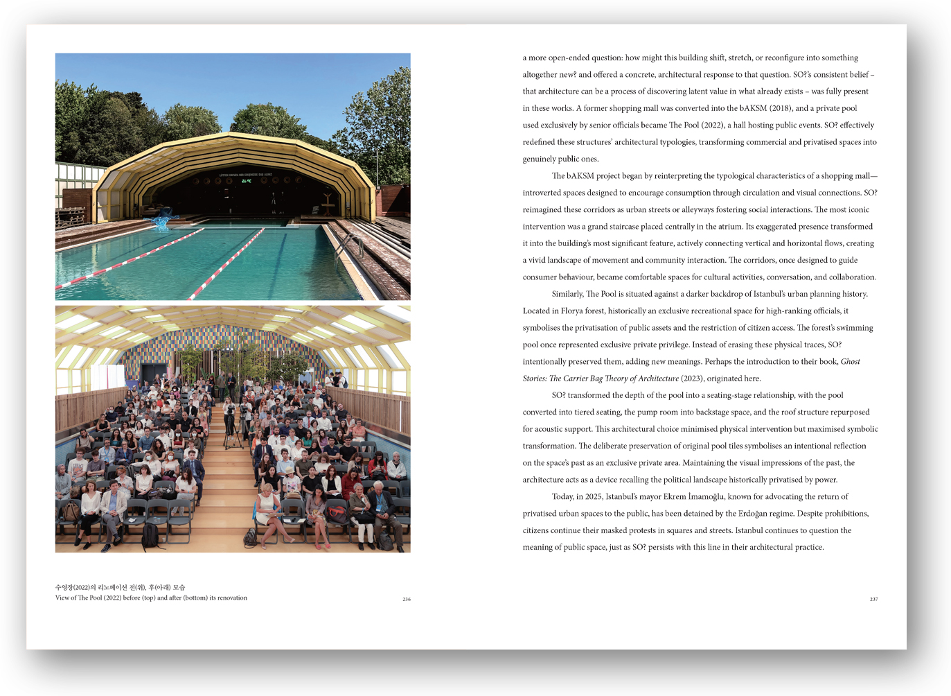 Part 2 EAA: Essay 맥락의 세부 사항을 추적해 반대 의견과 타협하기 | 엠레 아롤랏 EAA: Project 산카클라 모스크, 박물관 호텔 안타키아, 이스탄불 회화 및 조각 박물관 EAA: Review 경계의 건축가 | 서현 SO?: Essay 주인공이 아닌 건축 | 세빈제 바이라크 SO?: Project bAKSM, 수영장, 닭집, SUPRA, 두 얼굴의 집 SO?: Review 어떻게 건축사무소의 이름에 물음표가 붙었을까? | 강예린