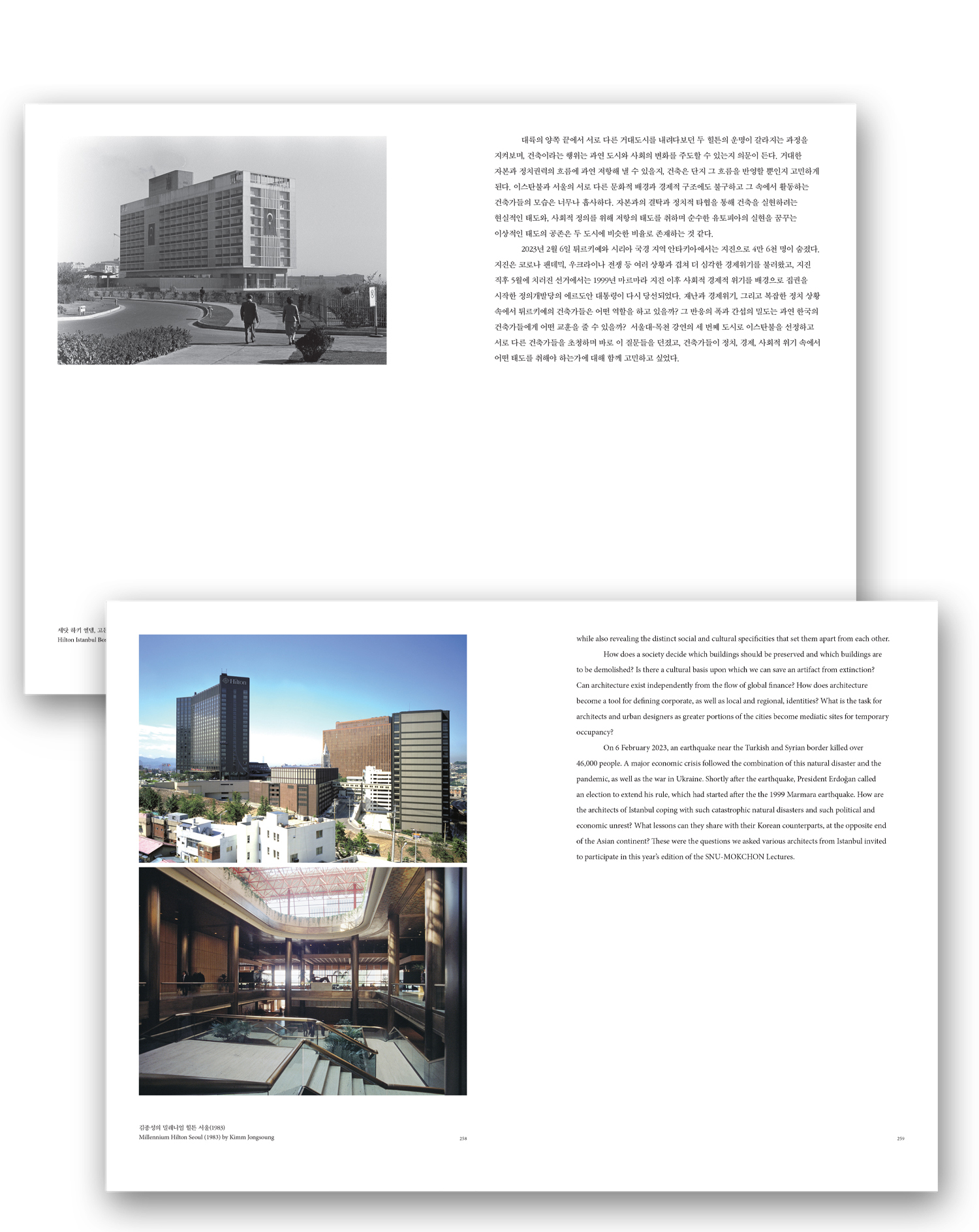 이번 책은 두 사무소의 작업을 각각 정리하는 대신, 튀르키예 동시대 건축이라는 하나의 지형 안에서 이들의 연관성을 추적하는 방식을 택했습니다. 에세이와 비평, 프로젝트와 경험담을 엮어, 서로 다른 목소리들이 교차하도록 구성했고요. 그 과정에서 자연스럽게 시선은 튀르키예를 넘어갑니다. 최춘웅 교수의 글에서 이스탄불과 서울의 두 힐튼 호텔이 비교되듯, 이 책에 등장하는 여러 도시적 상황들은 한국의 현실과도 겹쳐 읽힙니다. 다른 도시의 이야기인데도 낯설지 않게 느껴지는 순간들이 반복되죠. |