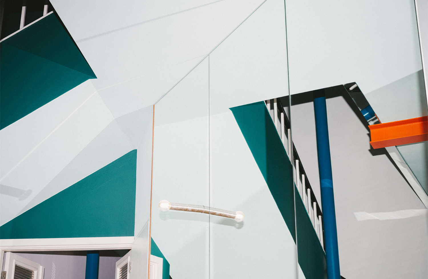 불규칙한 방을 덮는 격자 바닥패턴, 완고한 파사드에 뚫린 과도하게 큰 원형 창과 문, 개구부의 외곽선을 따라 그린 듯한 두꺼운 프레임, 벽보다 유연하게 공간을 분할하는 채색된 면들과 커튼들. 또 파스텔 톤, 만화적인 기하학, 단순한 도형 등, 이 장치들에 담긴 귀여움은 엄격한 비례 규율과 긴장 관계를 이룬다. 이로써 각 프로젝트는 주어진 껍데기를 세심하게 재조정한 결과이자 의도된 무장해제적 이미지로 읽힌다.